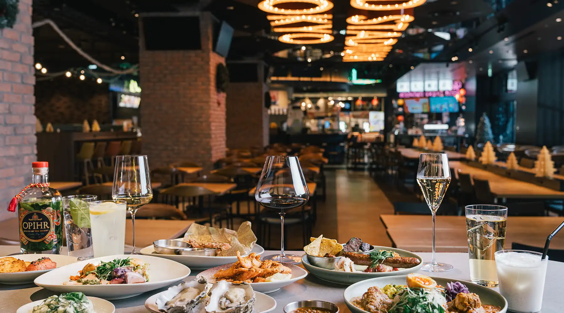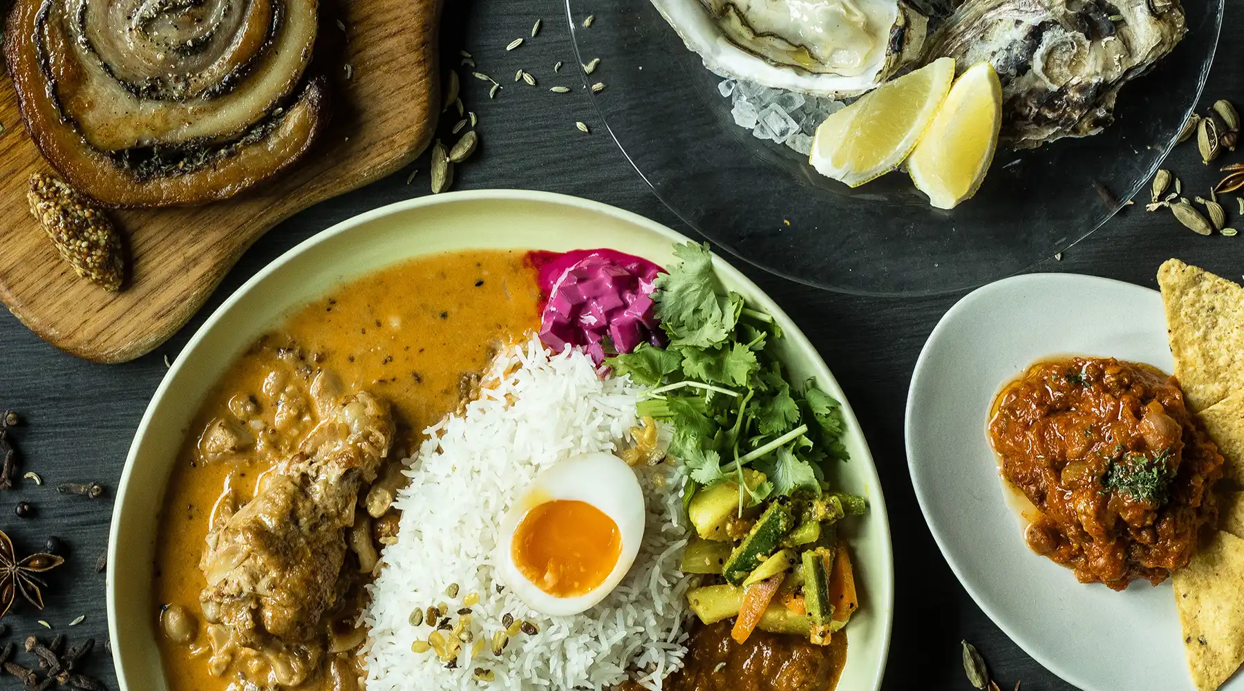 昼はスパイス香るランチ、午後はカフェ利用、夜はワインとバル料理で。